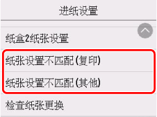 选择纸张设置不匹配(复印)或纸张设置不匹配(其他)。