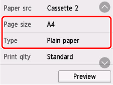 حدد معلومات الورق (حجم الورق ونوع الوسائط) التي تحققت منها في الخطوة 4.