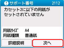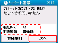 表示されている用紙情報が印刷設定と同じであることを確認したあと、[はい]を選んでください。