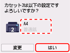 用紙サイズと用紙種類を確認したあと、[はい]を選んでください。