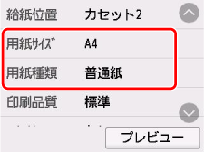 用紙サイズと用紙種類を、カセット2の用紙に合わせる
