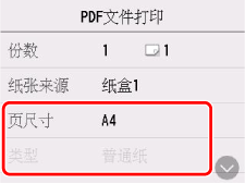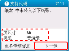 注释- 根据打印机设置的不同,“以装入的纸张进行打印。”可能不会出现。