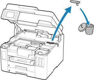 Deschideţi unitatea de scanare / capacul şi asiguraţi-vă că banda de livrare şi materialul de protecţie au fost îndepărtate de pe suportul capului de imprimare.