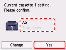Verificați informațiile despre hârtie (dimensiunea hârtiei și tipul de suport) și selectați Da (Yes).