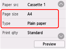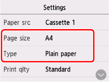 Selectaţi Nepotriv. setări hârtie (Copiere) (Paper settings mismatch (Copy)) sau Nepotriv. setări hârtie (Altele) (Paper settings mismatch (Other)).