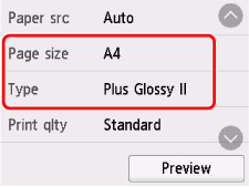 Selectaţi Nepotriv. setări hârtie (Copiere) (Paper settings mismatch (Copy)) sau Nepotriv. setări hârtie (Altele) (Paper settings mismatch (Other)).