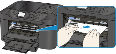 - If the message about paper jam is displayed on the LCD of the printer or on the computer screen when you resume printing after removing all the jammed paper, a piece of paper may remain inside the printer. In this case, make sure no piece of paper remains inside the printer.