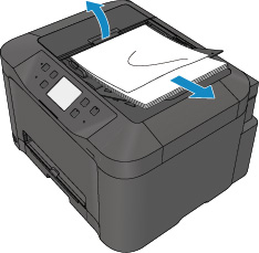 Nếu tài liệu bị kẹt trong khe tài liệu ra, đóng khay tài liệu như hình bên dưới và kéo tài liệu ra.