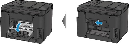 انحشار الورق داخل الغطاء الخلفي عند قيام الطابعة بسحب الورق المطبوع إلى الداخل.