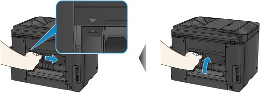 في حالة انحشار الورق داخل الغطاء الخلفي عند قيام الطابعة بسحب الورق المطبوع للداخل، قم بإزالة الورق المحشور باتباع هذه الخطوات.