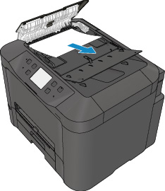 إذا كان المستند محشورًا في فتحة إخراج المستندات، فأغلق درج المستند كما هو موضح في الشكل أدناه، ثم اسحب المستند للخارج.