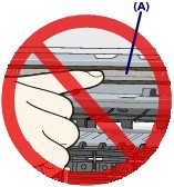 Ja iestrēgušais papīrs ir zem FINE kasetnes turētāja, bīdiet FINE kasetnes turētāju uz labo vai kreiso malu atkarībā no tā, kā ir vieglāk izņemt papīru.