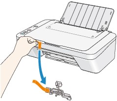 Ako otkrijete da su zaštitni materijal ili vrpca ostali pričvršćeni, izvucite produžetak ladice za izlaz papira i ladicu za izlaz papira kako bi uklonili zaštitni materijal ili vrpcu.