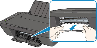 Hvis det fastkjørte papiret rives og du ikke kan fjerne papiret fra papirleveringssporet eller fra bakskuffen, eller hvis det fastkjørte papiret forblir inne i skriveren, kan du fjerne papiret ved å følge instruksjonene under.