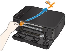เปิดฝาครอบออกกระดาษ จากนั้นให้ยืนยันว่าไม่มีวัตถุป้องกันหรือเทปติดอยู่กับตัวยึดคาร์ทริด FINE