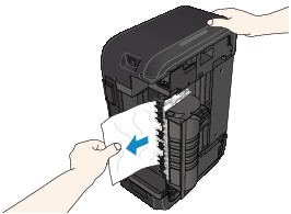 If you cannot remove the jammed paper from the transport unit, close the transport unit, return the machine to its original position, and remove the paper from inside the machine.