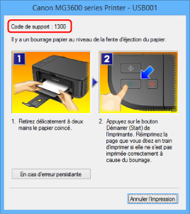 Pour retirer du papier coincé, reportez-vous à Liste des codes support d'erreur (bourrages papier).