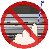 При перемещении держателя картриджа FINE удерживайте верхнюю часть держателя картриджа FINE и медленно перемещайте к правому или левому краю.