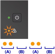 Supportkod som motsvarar antalet växelvisa blinkningar mellan PÅ (ON)-lampan och Alarm-lampan