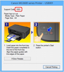 Om ett fel uppstår vid utskrift, t.ex. att papperet tar slut eller fastnar, visas ett felsökningsmeddelande automatiskt. Följ anvisningarna i meddelandet.