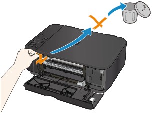Atveriet papīra izvades vāku un pārliecināties, vai aizsargmateriāls vai līmlente ir noņemti no FINE kasetnes turētāja.