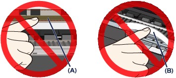 Ако хартията или ръцете ви докоснат тези части и ги зацапат или надраскат, машината може да се повреди.
