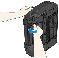 Atverot padeves bloku, pieturiet ierīci ar roku, lai tā nenokristu.