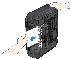 Ja papīrs ir sarullēts un to ir grūti izņemt, satveriet papīru aiz malām un pēc tam izņemiet.