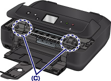 Når du flytter printhovedholderen, skal du holde på det øverste af printhovedholderen og langsomt lade den glide helt til højre eller venstre.