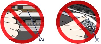 Ne dotikajte se prozornega filma (A) ali belega pasu (B).