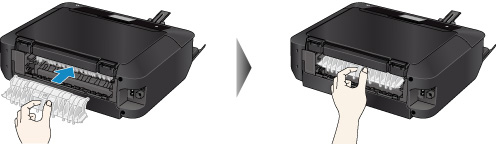Kui osa paberist jääb kassetist välja, eemaldage see, joondage servad ja asetage paber kassetti tagasi.