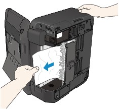 NoteIf the paper is rolled up and it is difficult to remove, grasp the edges of the paper, then remove the jammed paper.