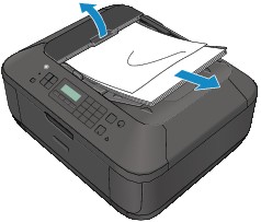 Če se dokument zagozdi v odlagalni reži dokumentov, zaprite pladenj dokumenta, kot je prikazano na spodnji sliki, in izvlecite dokument.