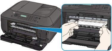 Če se papir strga, lahko košček papirja ostane v napravi. Preverite naslednje in odstranite košček papirja, ki je ostal v napravi.