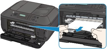 OpombaKo v tiskalnik ponovno nalagate papir, preverite, ali uporabljate ustrezen papir za tiskanje in ali ga pravilno nalagate v napravo. Kadar se na zaslonu LCD na napravi ali na zaslonu računalnika prikaže sporočilo o zagozdenem papirju ter ta zagozden papir odstranite in nadaljujete s tiskanjem, lahko košček papirja morda ostane v napravi. V tem primeru preverite, ali je košček papirja ostal v napravi.