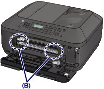Če se je papir zagozdil pod držalom kartuše FINE, pomaknite držalo kartuše FINE v desni ali levi kot in odstranite papir.