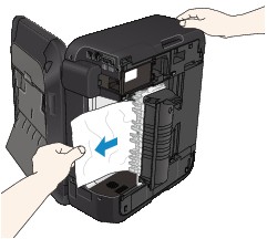 OpombaČe je papir zvit in ga je težko odstraniti, papir potegnite za robove in ga tako odstranite.