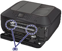 Če se je papir zagozdil pod držalom kartuše FINE, pomaknite držalo kartuše FINE v desni ali levi kot in odstranite papir.