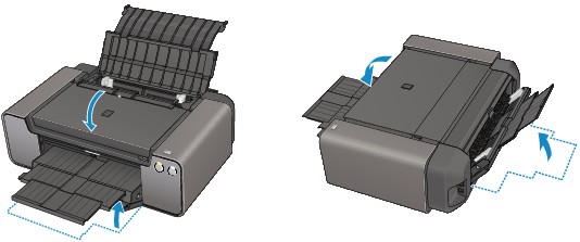 Tekan tombol Pembersihan Kertas Macet(Paper Jam Clearing) pada sisi tatakan keluaran kertas, untuk mengeset tatakan keluaran kertas ke posisi pembersihan kertas macet.