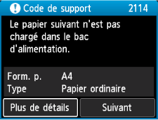Sélectionnez cette option lorsque vous souhaitez modifier les paramètres de papier pour l'impression. Modifiez les paramètres du papier, puis essayez d'imprimer à nouveau.