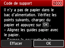 Lorsqu'un code support et un message s'affichent sur l'écran LCD de l'imprimante :