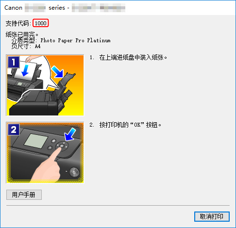 如果打印时发生错误(例如,纸张用完或卡纸),会自动显示故障排除信息。 采取信息中描述的适当措施。