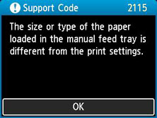 Če se nastavitve papirja, določene za tiskanje, na primer razlikujejo od informacij o papirju za pladenj za ročno podajanje, ki so registrirane v tiskalniku, bo na zaslonu LCD tiskalnika prikazano naslednje sporočilo.