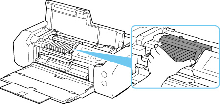 Ko premaknete nosilec tiskalne glave, primite zgornji del nosilca tiskalne glave in ga počasi pomaknite skrajno desno ali skrajno levo.
