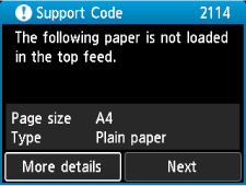 Ha a nyomtatáskor megadott papírbeállítások eltérnek a felső adagoló nyomtatón bejegyzett papírinformációitól, a következő üzenet jelenik meg a nyomtató LCD-kijelzőjén.
