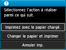 Sélectionnez cette option lorsque vous souhaitez modifier les paramètres de papier pour l'impression. Modifiez les paramètres du papier, puis essayez d'imprimer à nouveau.