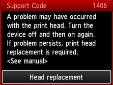 Vervang de printkop als het foutbericht waarin u wordt gezegd de printkop te vervangen op het LCD-scherm wordt weergegeven, of als het Canon-servicecentrum u aangeeft de printkop te vervangen.