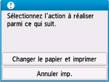 Sélectionnez cette option lorsque vous souhaitez modifier les paramètres de papier pour l'impression. Modifiez les paramètres du papier, puis essayez d'imprimer à nouveau.