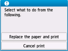 Selezionare questa opzione per cambiare le impostazioni della carta specificate durante la stampa. Modificare le impostazioni carta e provare a stampare di nuovo.