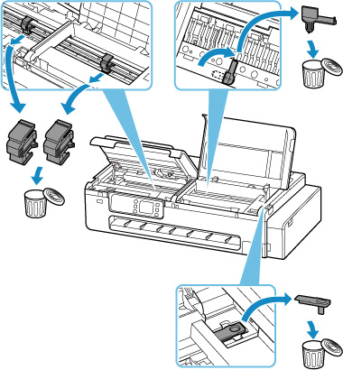 打开机身盖,确保已从托架上取下运输过程中用于固定的胶带和保护材料。